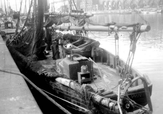 We tried by all means to clear the net but could not do so, and as we could not do so, and as we could not use the engine and as we were on a lee shore and the wind was becoming stronger all the while, we got the sails ready and set them with the intention of sailing back to Ramsgate.