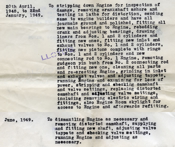 The damage is stated to have been caused by the mainsail blowing out during the gale on the 31st. March, 1951, straining the mainmast which subsequently parted and broke on the 5th. April, 1951.”