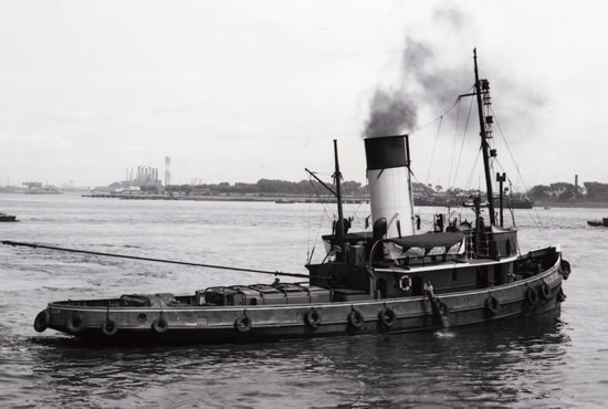 21-4-1944 Assisted towing Phoenix unit A1-59 ex King George V Dock to Tilbury.